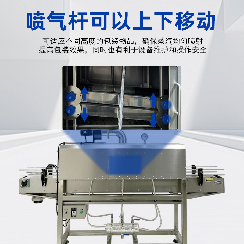 蒸汽收縮機的核心工作原理是利用蒸汽的均勻熱量,使熱收縮膜受熱后緊密包裹產品,最終完成密封定型的自動化包裝過程。