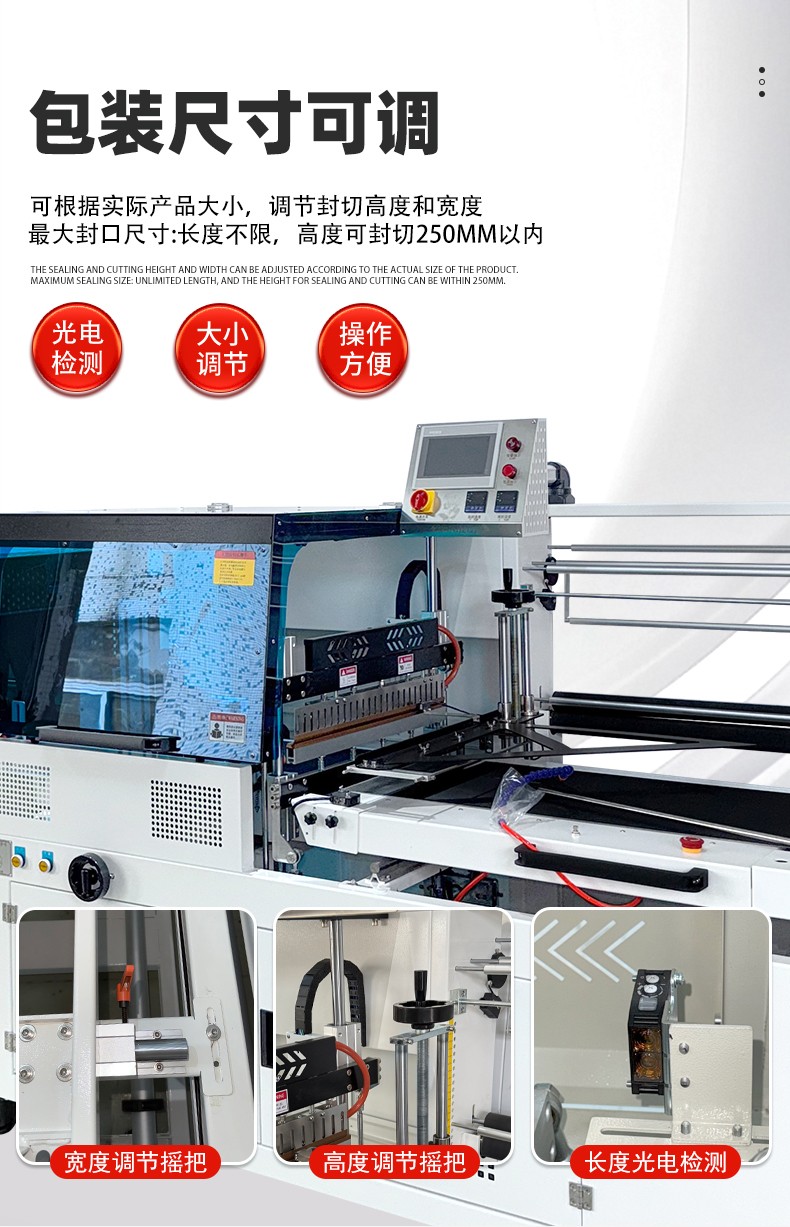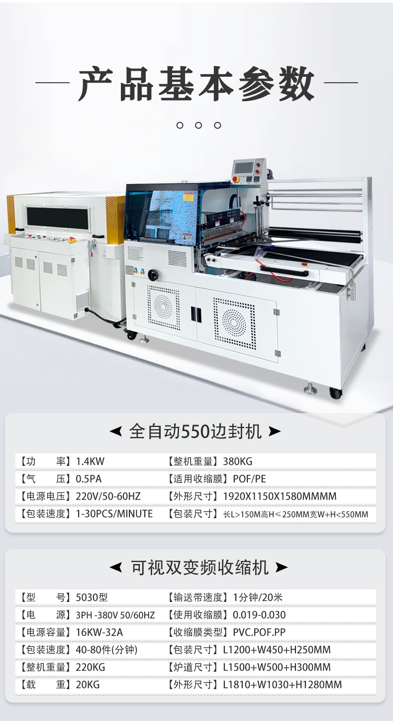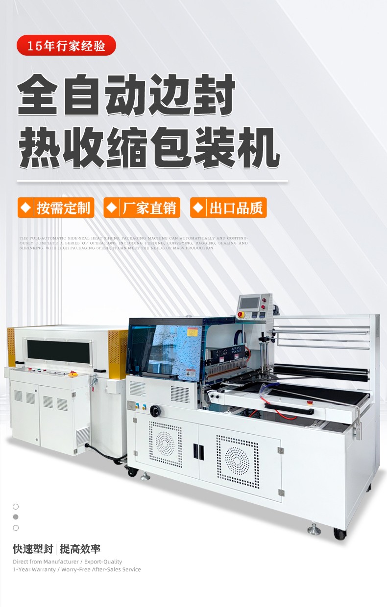 全自動(dòng)邊封熱收縮包裝機(jī)自動(dòng)化程度高,邊封設(shè)計(jì)使產(chǎn)品包裝長度無限制