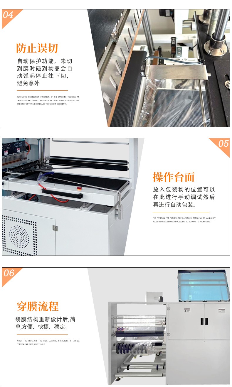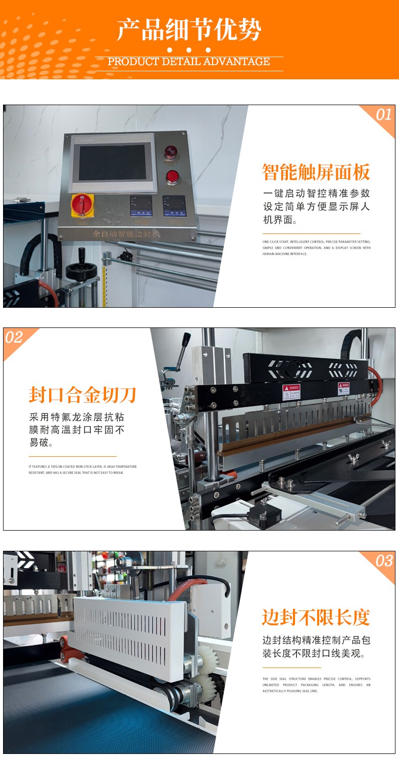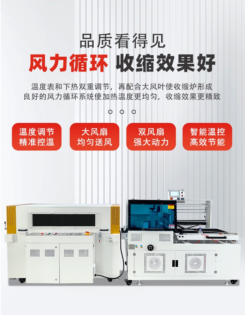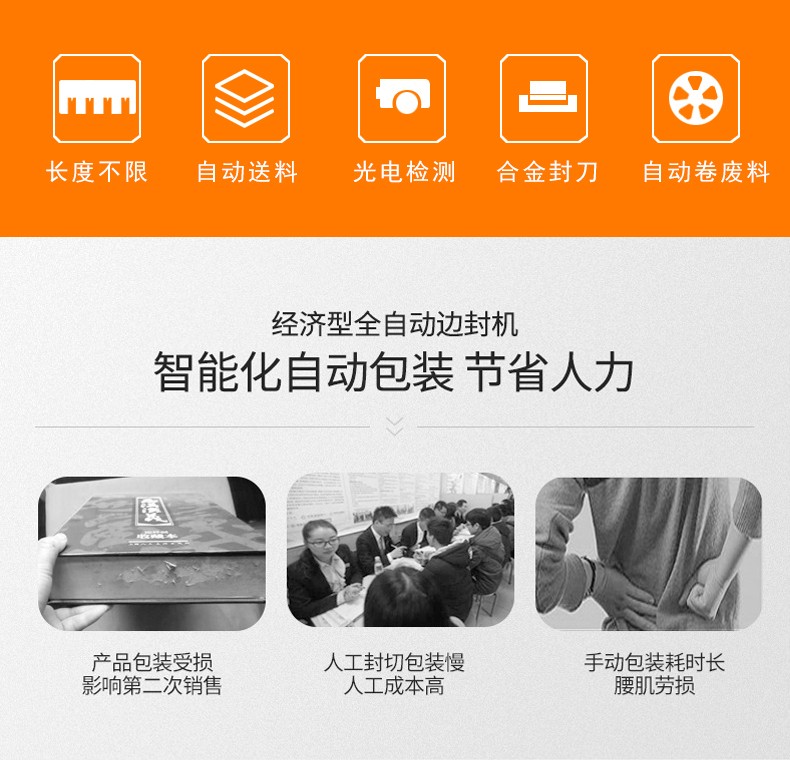 全自動(dòng)邊封熱收縮包裝機(jī)自動(dòng)化程度高,邊封設(shè)計(jì)使產(chǎn)品包裝長度無限制
